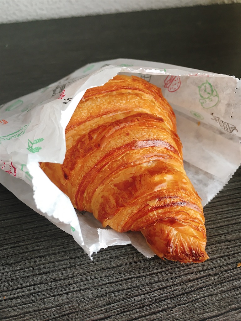 スーパーの帰りにパン屋さんがあったのでクロワッサンを買ってみました。